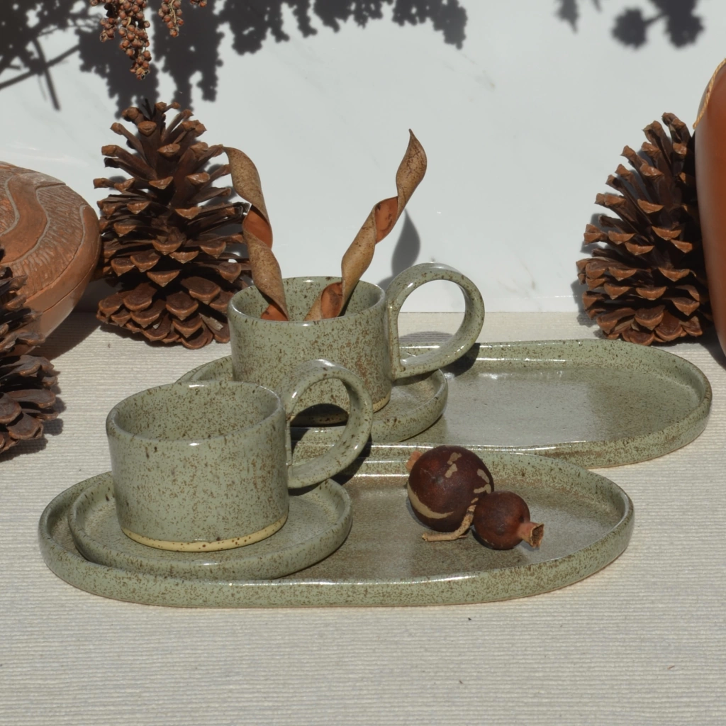 Prato oval M, perfeito para usar como prato de sobremesa casando perfeitamente com as nossas canecas e conjuntos de xícaras com pires.
